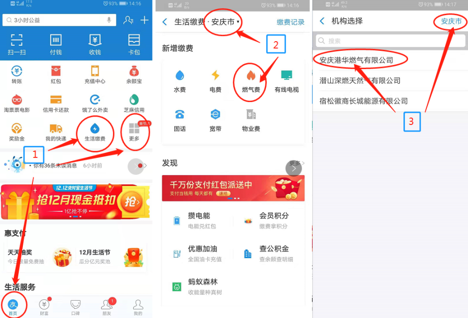 皖事通:安裝并打開皖事通APP,進入“更多服務”-選擇“生活服務”-“生活繳費”,點擊“燃氣費繳納”即可繳納燃氣費或者預存氣費。