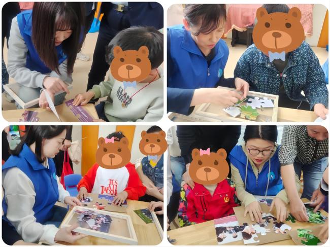 活動中,志愿者們根據兒童的閱讀需求,向醫院兒童康復中心的孩子們捐贈了成語故事、生活常識、兒童繪本等多方面的圖書共200余冊,讓康復中心“愛心圖書角”的建設更加充實完善,并邀請康復中心的小朋友們共同參與手工DIY活動,一起動手拼圖。活動不僅有效鍛煉了康復中心兒童的動手能力、協調能力、對色彩的識別能力,更通過“愛心圖書角”的建立豐富了孩子們的業余生活,為康復中心兒童提供良好的閱讀環境,給予他們心靈陪伴和精神支持。