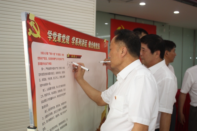 公司黨委委員、副總經理楊善俊帶領全體黨員重溫入黨誓詞,進一步增強全體黨員的黨性觀念,激勵大家以黨章規范自己的言行,牢記黨的宗旨,履行黨員義務,做一名稱職的、合格的共產黨員。宣誓結束后,全體黨員還共同簽署了《“兩學一做”黨員承諾書》,并為公司結對幫扶村組織了“心系貧困戶、情暖貧困村”愛心捐款活動,共籌集善款近萬元,以實際行動踐行“兩學一做”。