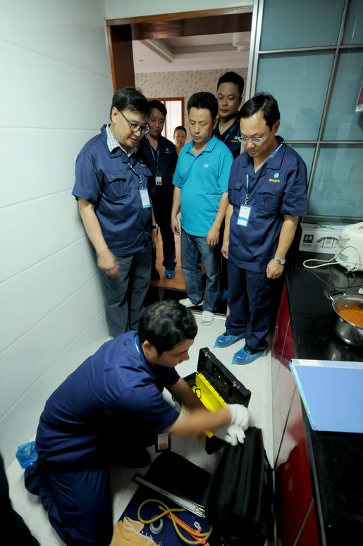 在安慶巡查的第三站——綠地迎江世紀城小區,主要展示的是小區戶內集中安檢。進入小區,映入眼簾的是一排排安檢宣傳、咨詢、安全燃氣具展示區,宣傳展板向居民展示燃氣安全使用知識、燃氣事故警示及安全燃氣具的使用等常識,工作人員細致耐心的解答居民的咨詢,并發放《燃氣客戶安全用氣手冊》。陳總裁等集團領導跟隨安檢員來到客戶家中,觀看戶內安檢的每個環節,當安檢人員規范地完成整個安檢流程后,陳總裁給予了“很好,不亞于香港水平”的高度評價。